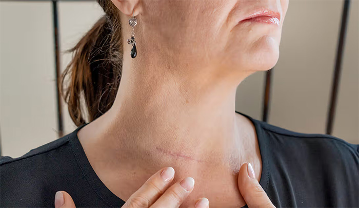 Thyroid surgery, also called thyroidectomy, involves the partial or complete removal of the thyroid gland. It is commonly performed to treat conditions such as thyroid cancer, goiter, or hyperthyroidism. The procedure may involve removing one lobe (lobectomy) or the entire gland (total thyroidectomy). It is typically done under general anesthesia, with minimally invasive techniques available in some cases. Post-surgery, patients may require lifelong hormone replacement therapy if the entire gland is removed. Recovery time can vary, but most patients return to normal activities within a few weeks.